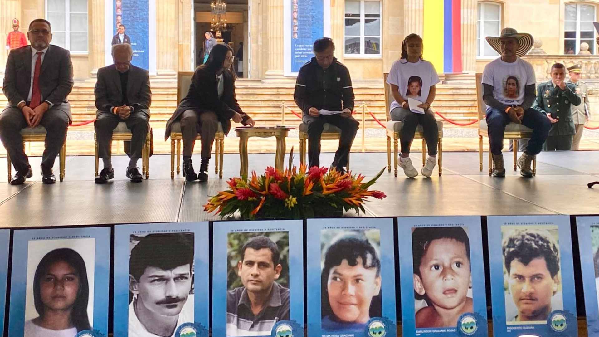 El jueves 5 de junio se realizó el evento en la Plaza de Armas de la Casa de Nariño, en Bogotá, y contó con la participación de integrantes de la Comunidad de Paz de San José de Apartadó, líderes sociales, organizaciones defensoras de derechos humanos, miembros de la Fuerza Pública, delegaciones de países acompañantes y funcionarios del Gobierno nacional.