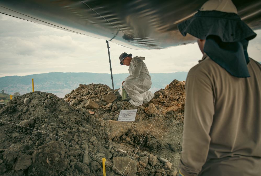 El área de mayor interés con la zona de apoyo incluye los taludes, los bordes inclinados del terreno y las demás zonas de trabajo. Según Gustavo Salazar, magistrado de la JEP, esta área de 3000 metros cuadrados se divide en cuadros, los cuales a su vez se organizan en cuadrículas. “Cada una de ellas se va excavando poco a poco, con un objetivo principal: llegar al suelo histórico, es decir, al nivel original del terreno, antes de que fuera alterado por el relleno. Este proceso se evalúa todos los días, según el avance de la excavación”, dijo.
