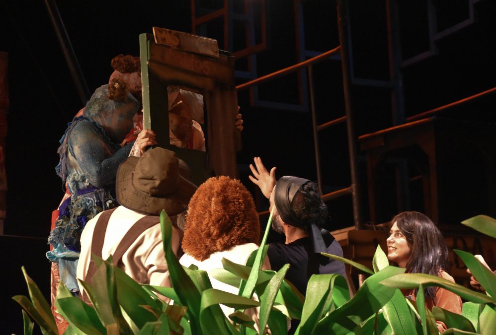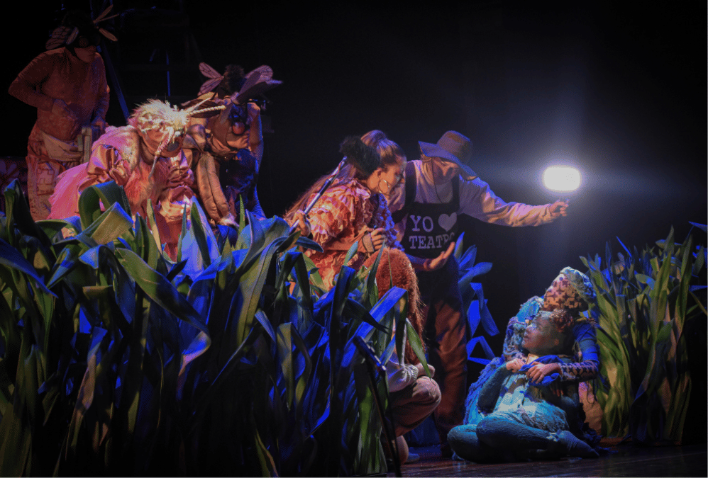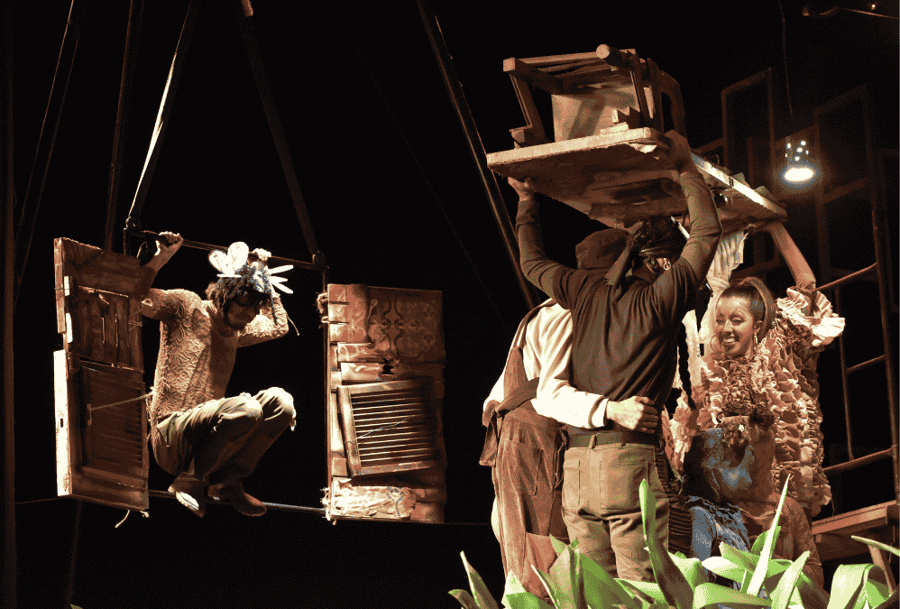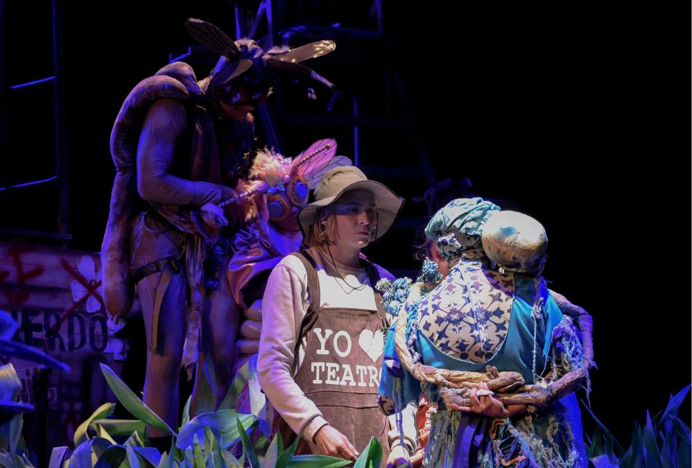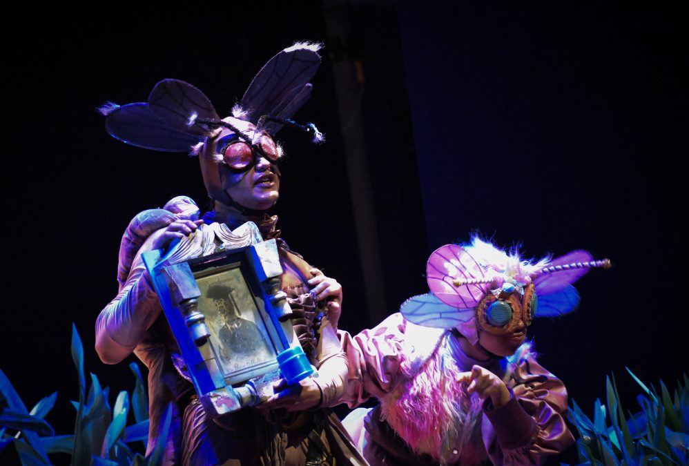 En la obra dos moscas acompañan al colectivo La Boca en su visita a El Buen Recuerdo. Foto: Manuela Echavarría Cuartas