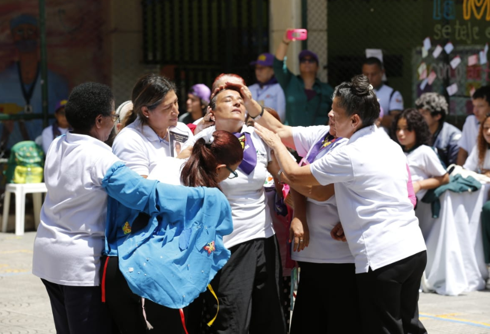 En la mañana, las Mujeres Caminando por la Verdad realizaron en la jornada “¡Orión nunca más!” la caravana por la memoria que recorrió barrios como San Javier, el Corazón y Villa Laura, y finalizó en la Institución Educativa Eduardo Santos, donde ellas encarnaron un performance para sensibilizar a los escolares sobre La Escombrera, a pocas cuadras de allí.